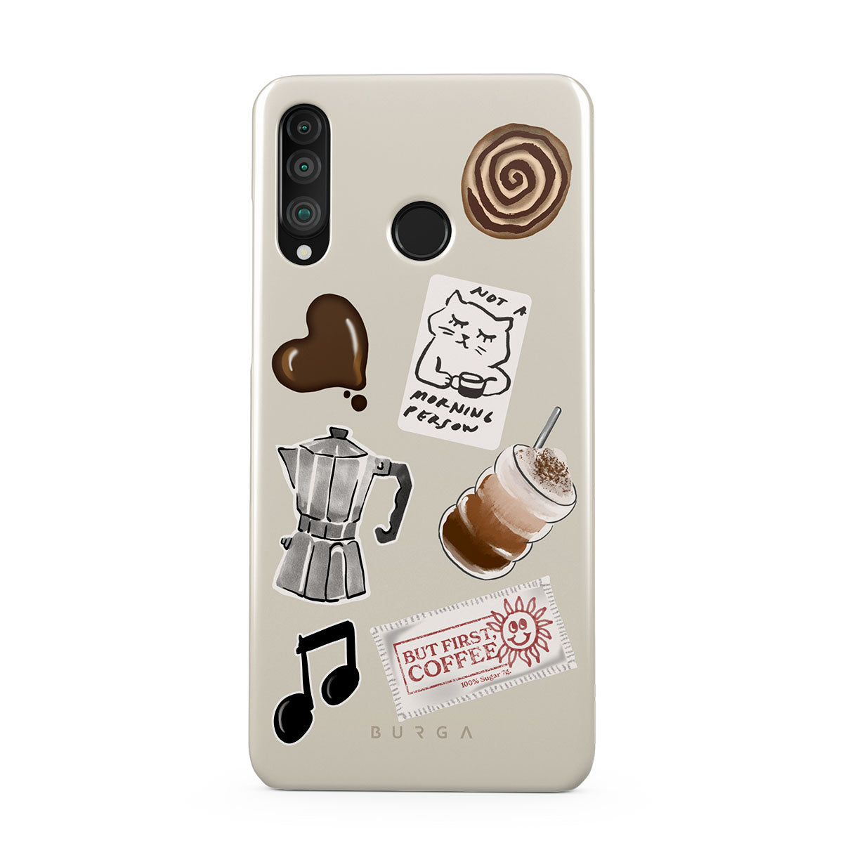 Den här stilen har: mokabryggare, frappé, kanelbulle, chokladhjärta, klistermärke "Not a morning person", kvitto "But First, Coffee", musiknot.