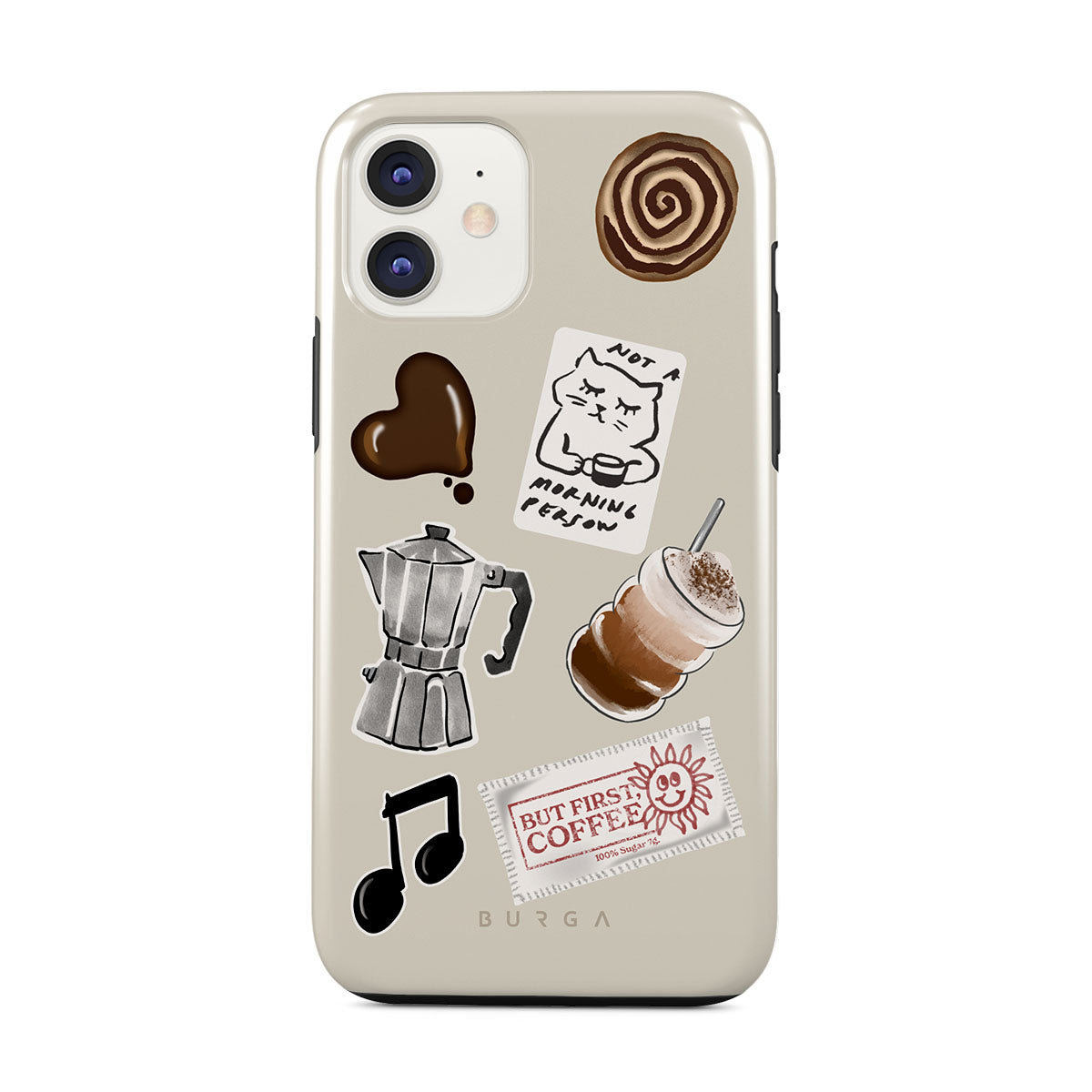 Den här stilen har: mokabryggare, frappé, kanelbulle, chokladhjärta, klistermärke "Not a morning person", kvitto "But First, Coffee", musiknot.