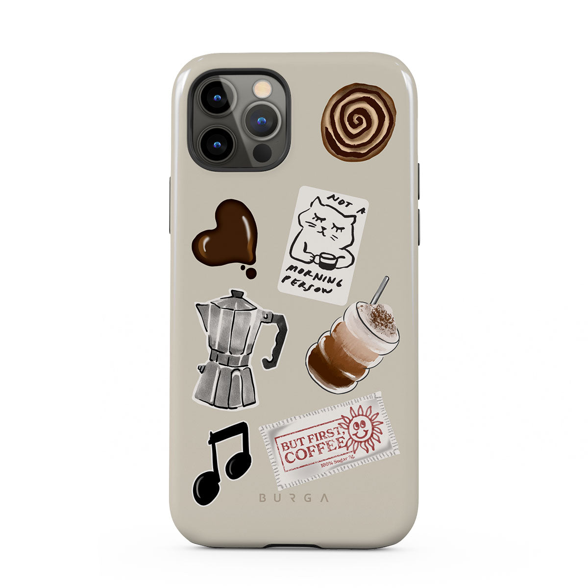 Den här stilen har: mokabryggare, frappé, kanelbulle, chokladhjärta, klistermärke "Not a morning person", kvitto "But First, Coffee", musiknot.