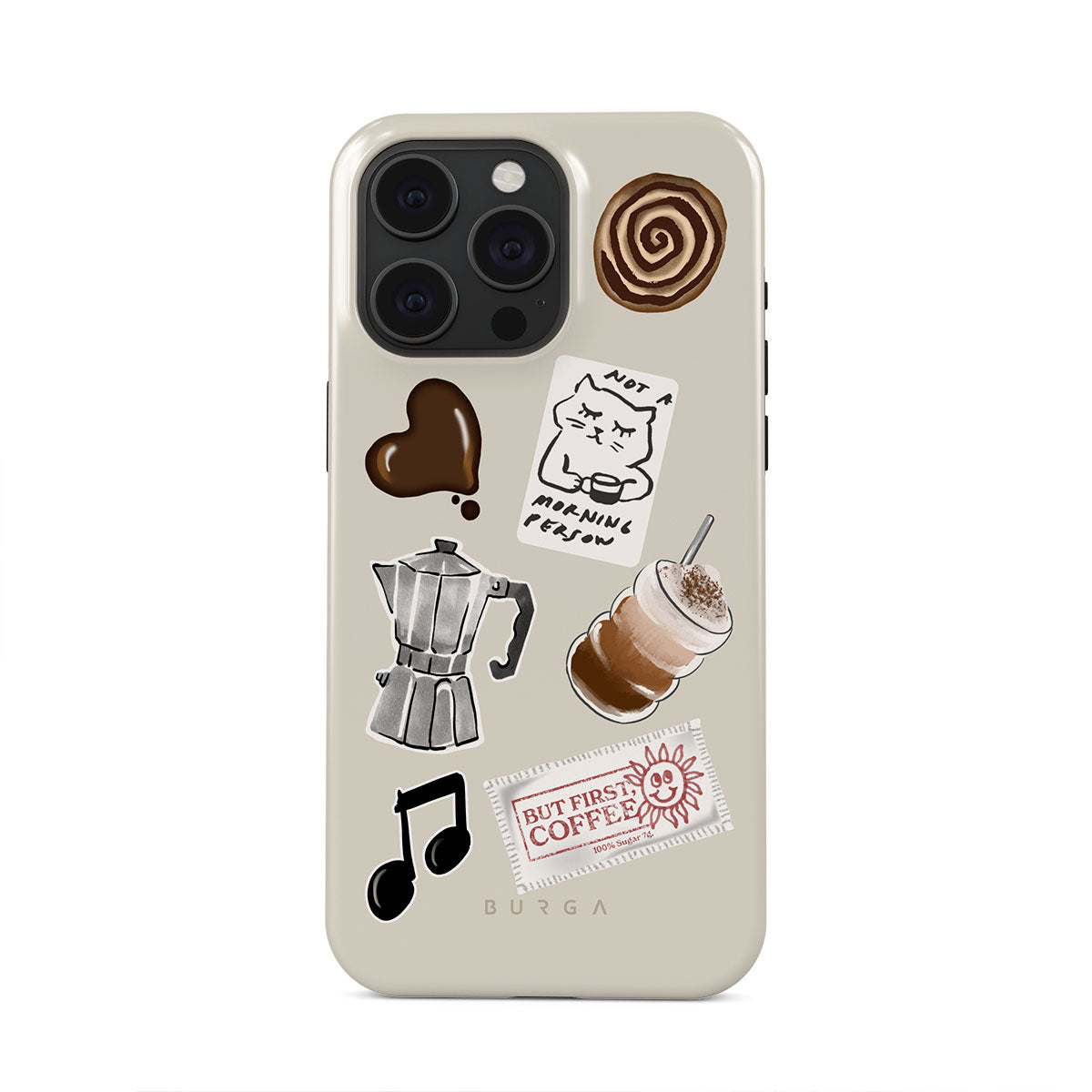 Den här stilen har: mokabryggare, frappé, kanelbulle, chokladhjärta, klistermärke "Not a morning person", kvitto "But First, Coffee", musiknot.