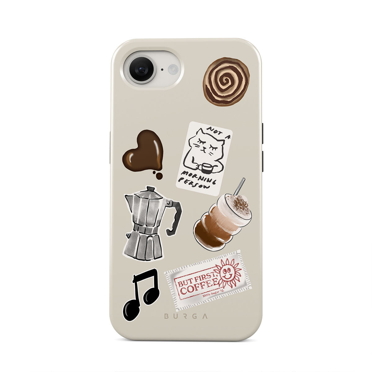 Den här stilen har: mokabryggare, frappé, kanelbulle, chokladhjärta, klistermärke "Not a morning person", kvitto "But First, Coffee", musiknot.