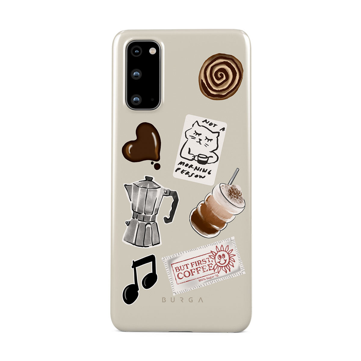 Den här stilen har: mokabryggare, frappé, kanelbulle, chokladhjärta, klistermärke "Not a morning person", kvitto "But First, Coffee", musiknot.
