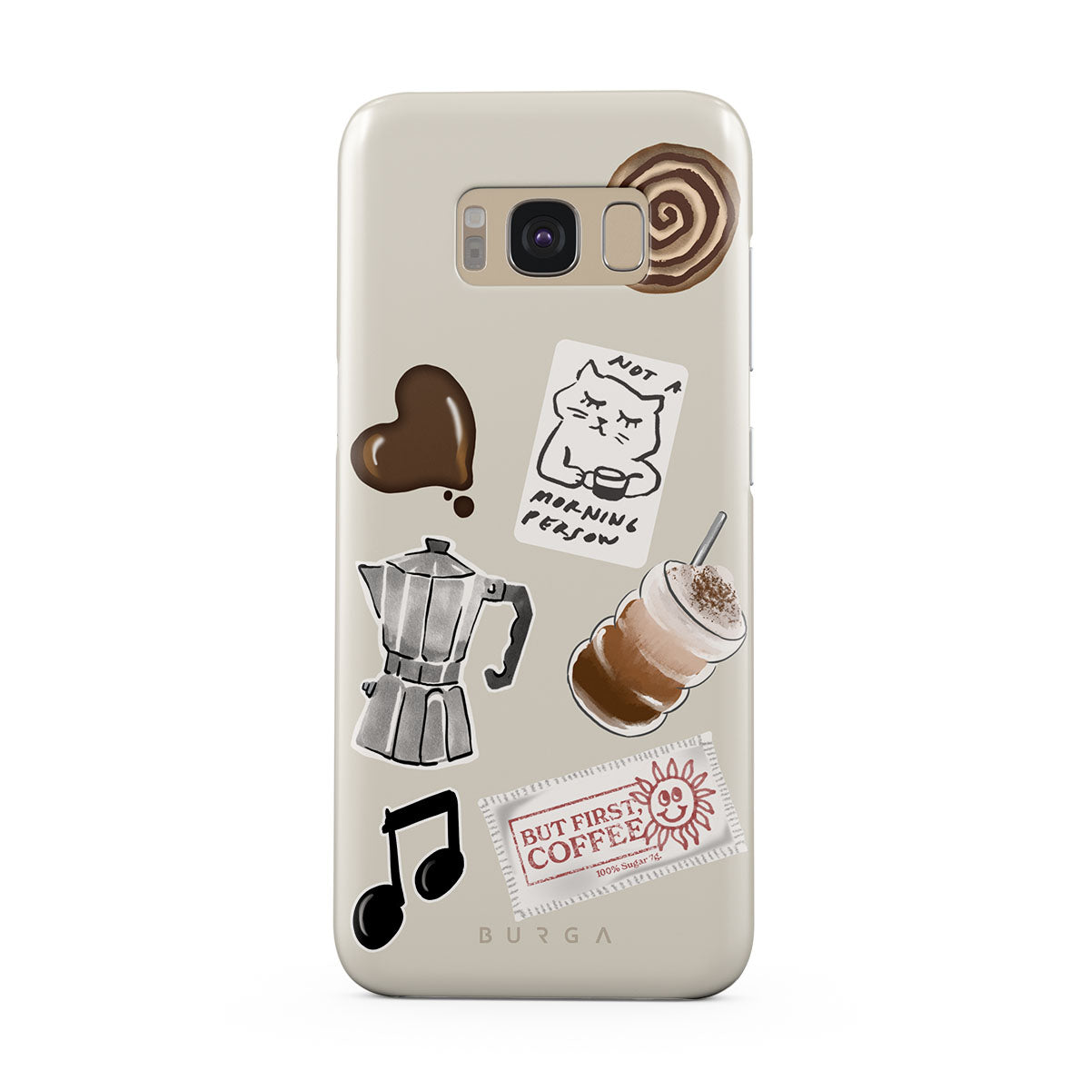Den här stilen har: mokabryggare, frappé, kanelbulle, chokladhjärta, klistermärke "Not a morning person", kvitto "But First, Coffee", musiknot.