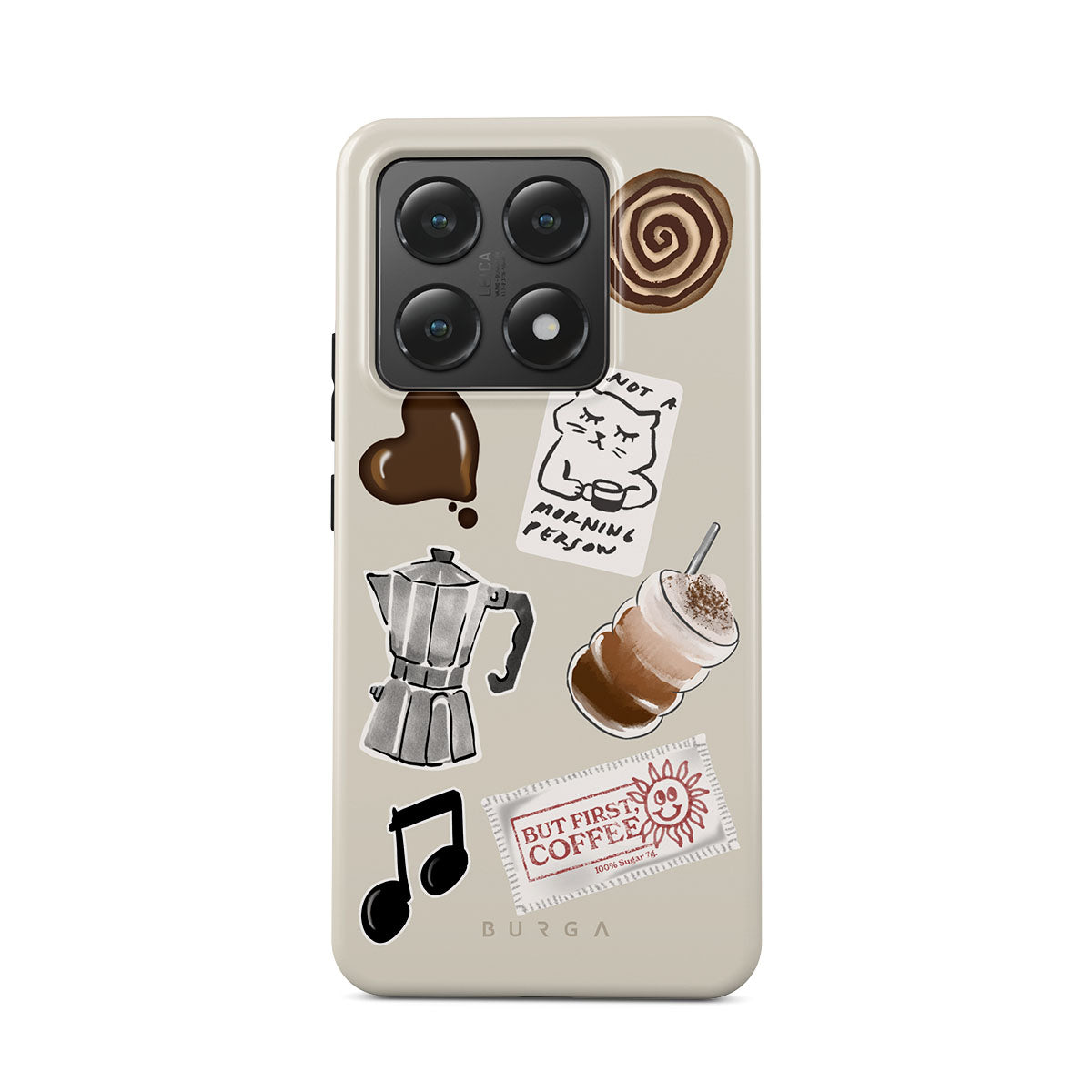 Den här stilen har: mokabryggare, frappé, kanelbulle, chokladhjärta, klistermärke "Not a morning person", kvitto "But First, Coffee", musiknot.