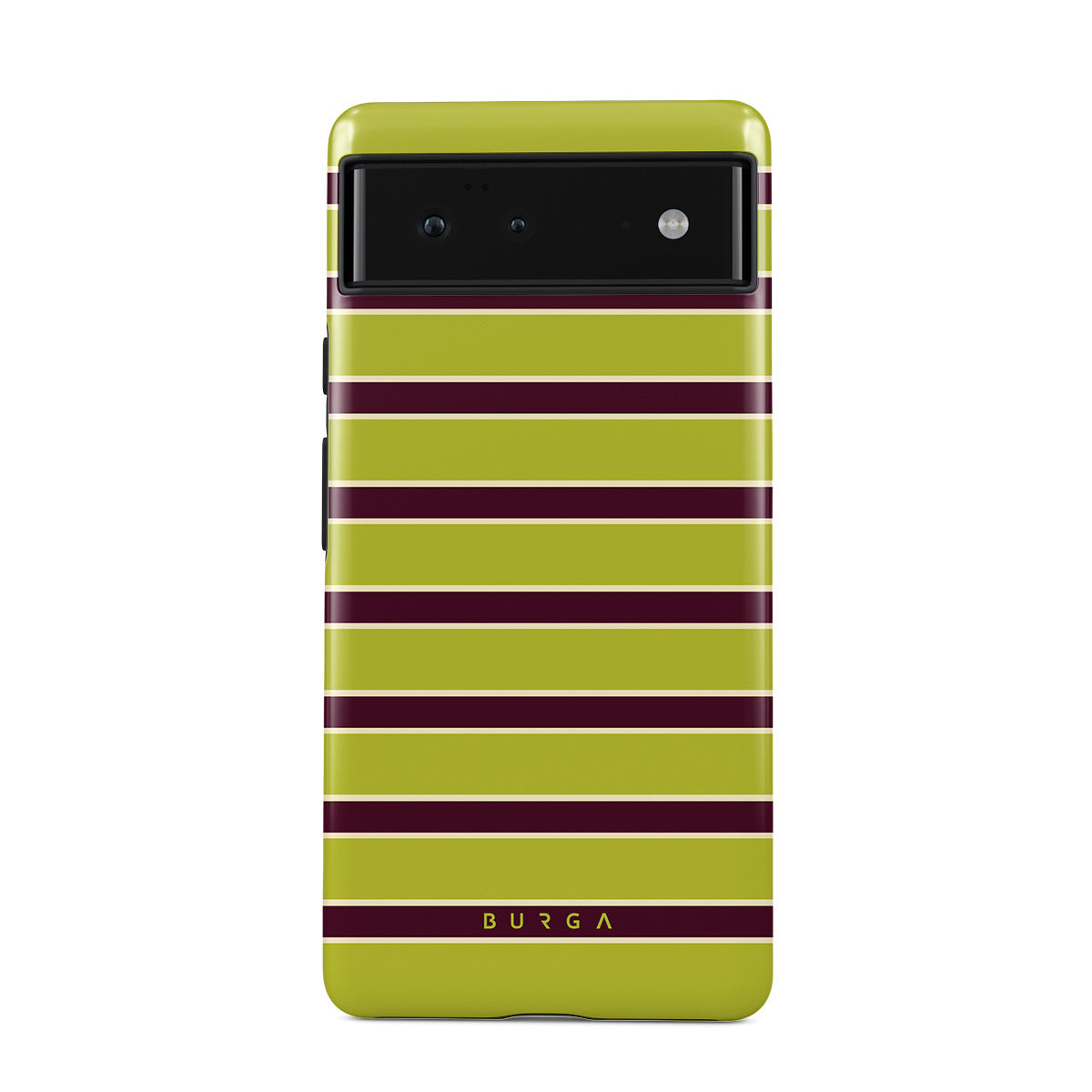 Den här stilen har: tjocka horisontella ränder i limegrönt och vinrött.