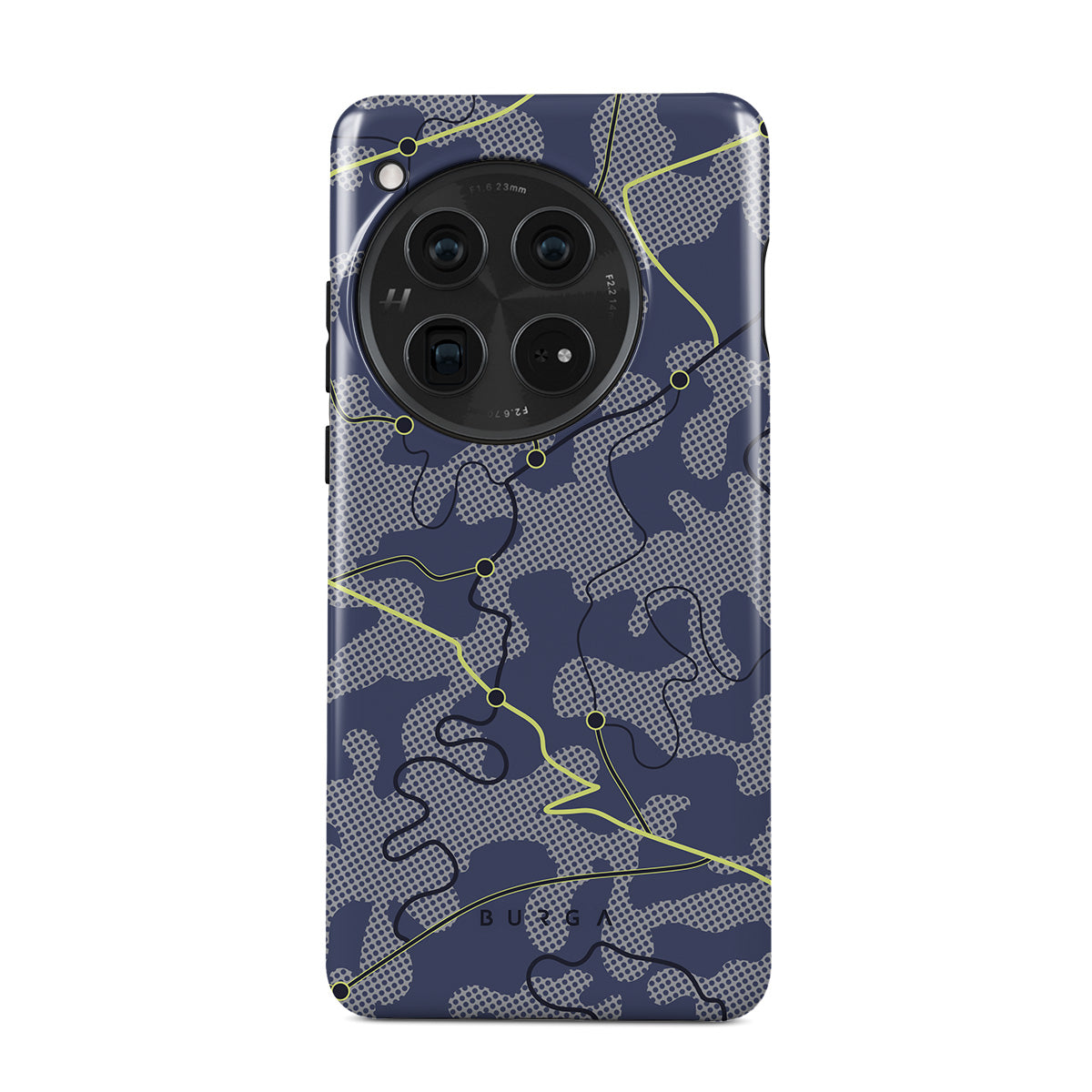 Denna design har: blått, kartlinjer, abstrakta linjer