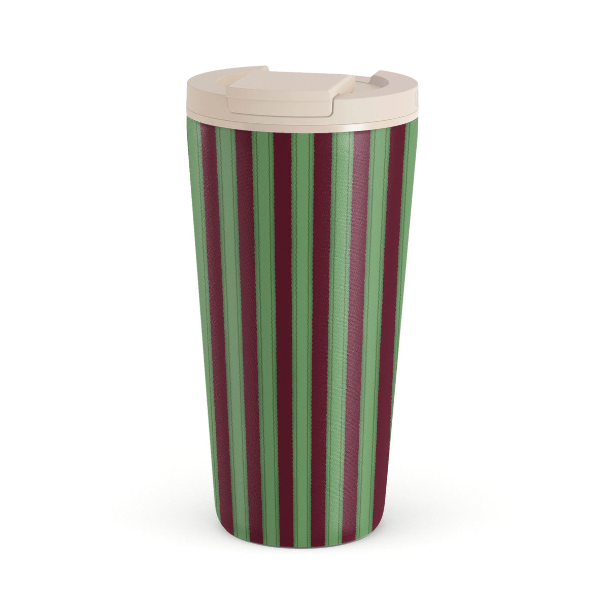 Denna design har: röd och grön randig, vertikala ränder, godisstångsmönster, klassiska julfärger, kraftiga ränder, pepparmyntsstångdesign, traditionella helgstrimmor