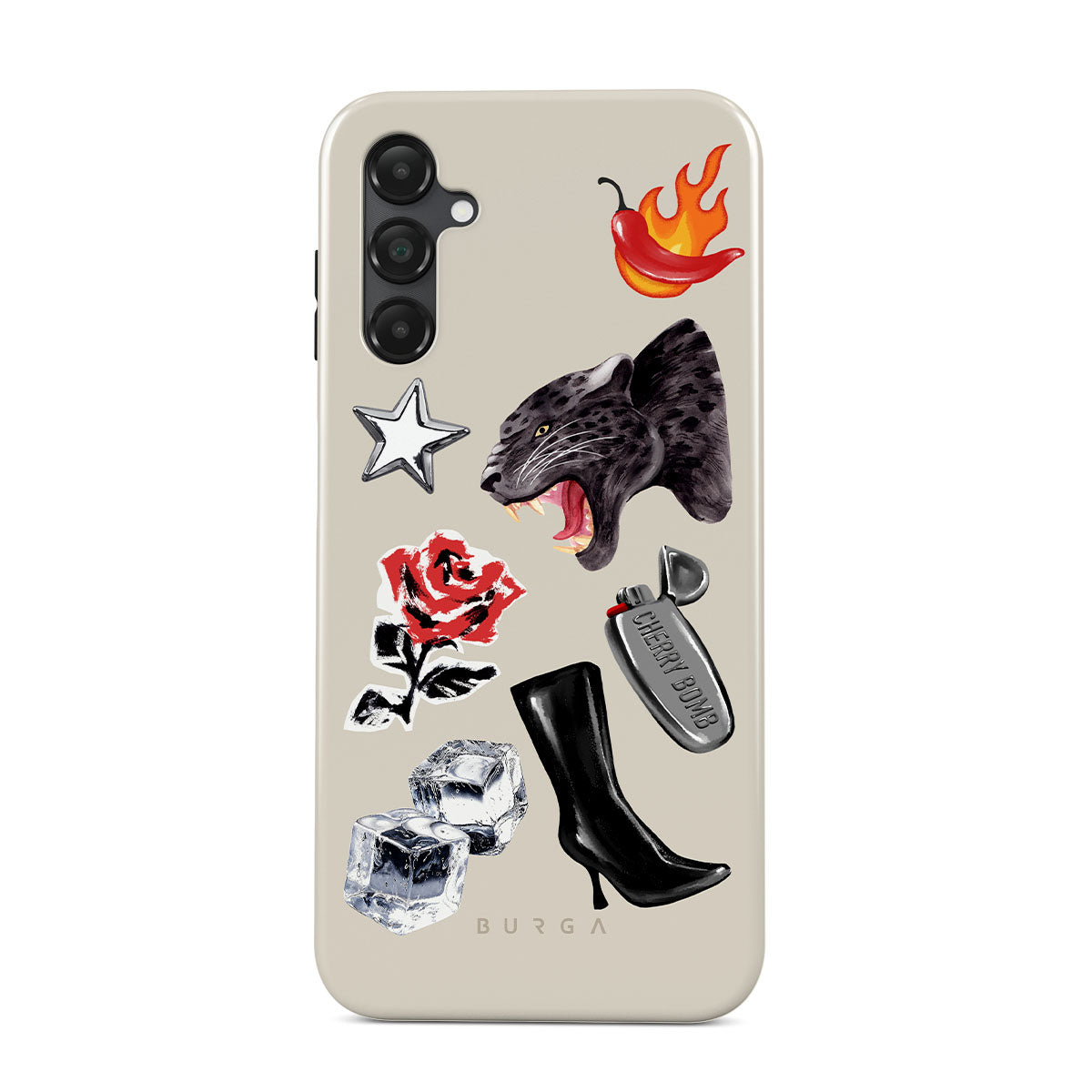 Den här stilen har: svart panter, röd ros, brinnande paprika, silverfärgad tändare, svarta knähöga stövlar, isbitar, silverstjärna.