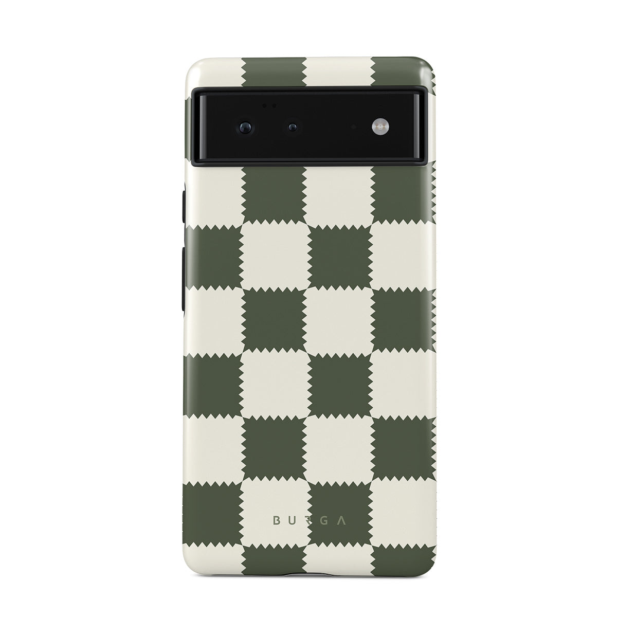 Denna design har: rutmönster, grönt och vitt, geometriskt