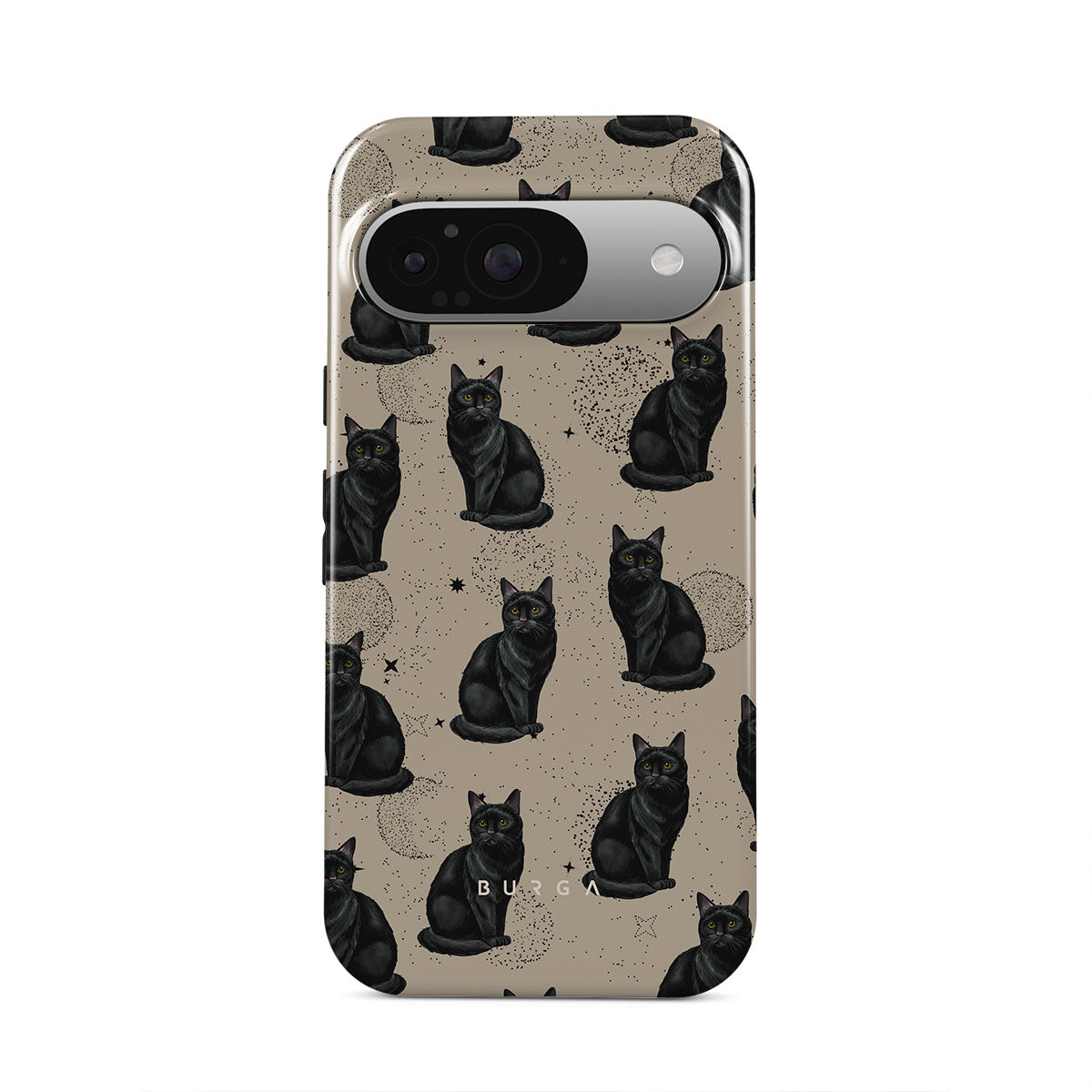 Den här designen har: svarta katter, mystiska symboler.