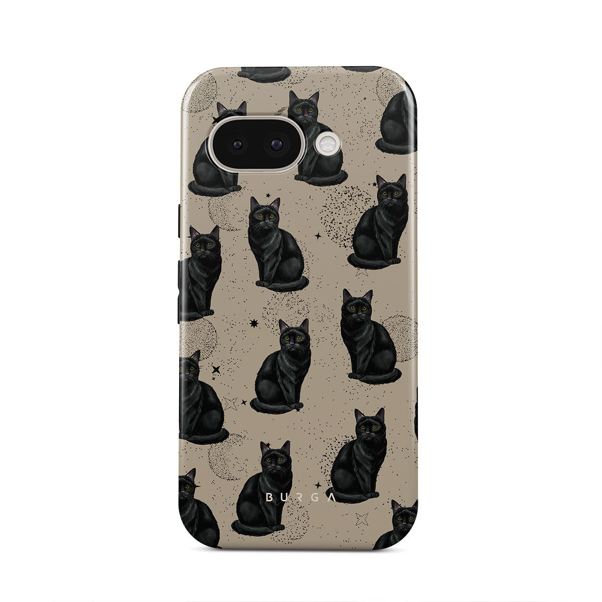 Den här designen har: svarta katter, mystiska symboler.