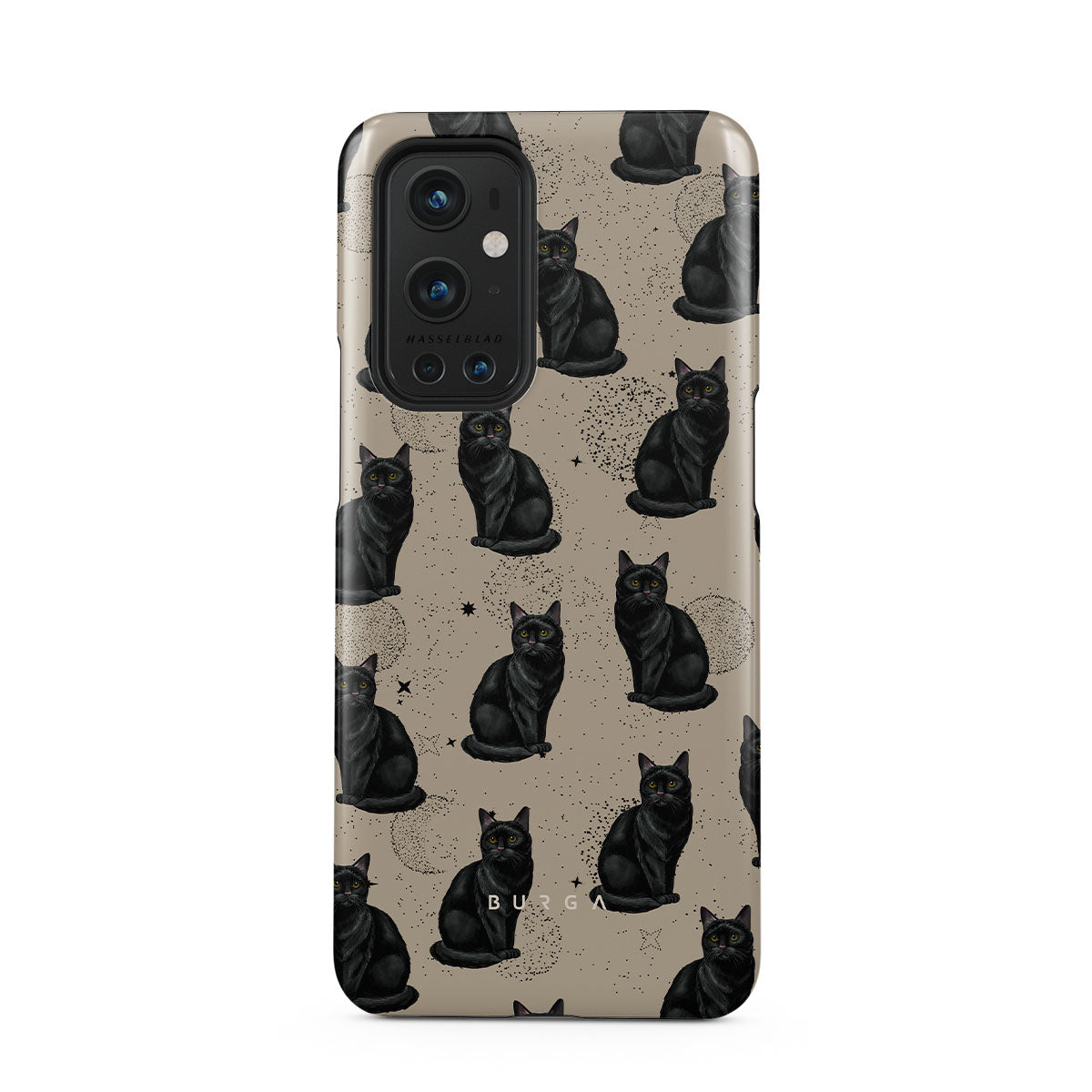 Den här designen har: svarta katter, mystiska symboler.