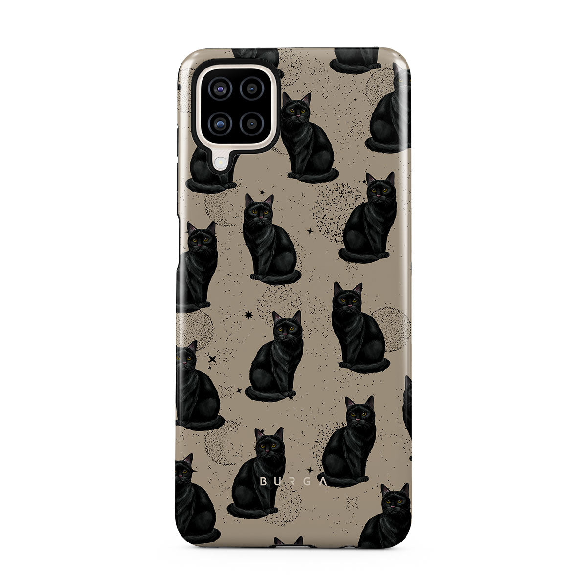 Den här designen har: svarta katter, mystiska symboler.