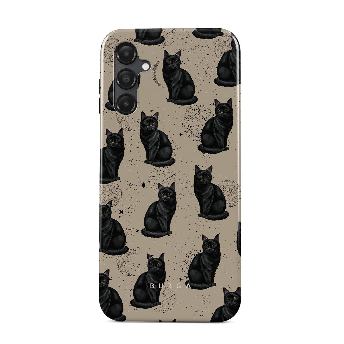 Den här designen har: svarta katter, mystiska symboler.