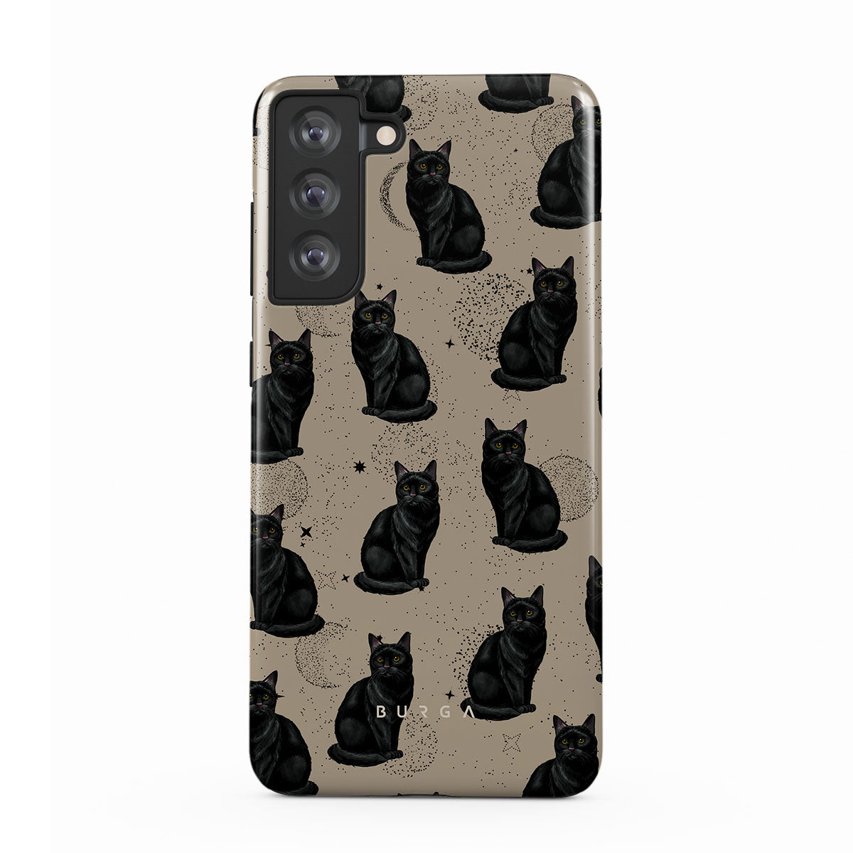 Den här designen har: svarta katter, mystiska symboler.