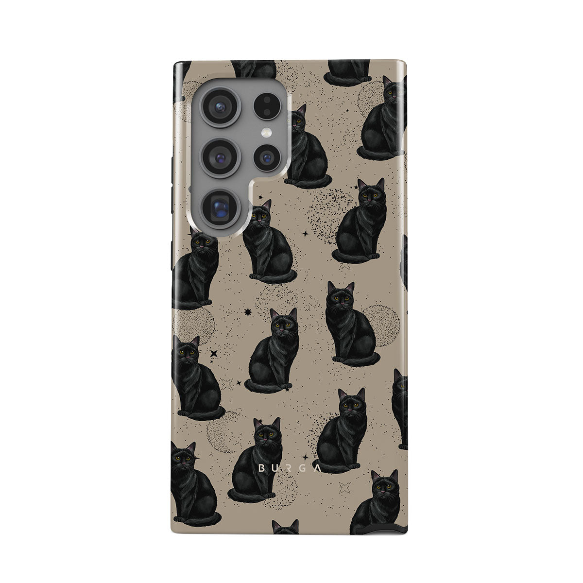 Den här designen har: svarta katter, mystiska symboler.