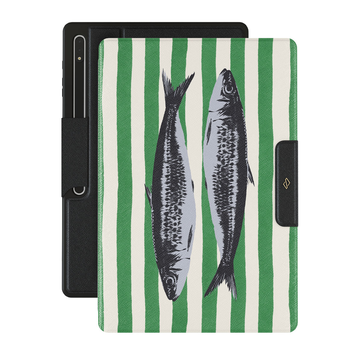 Den här stilen har: Sardiner, gröna ränder, oceanmotiv.