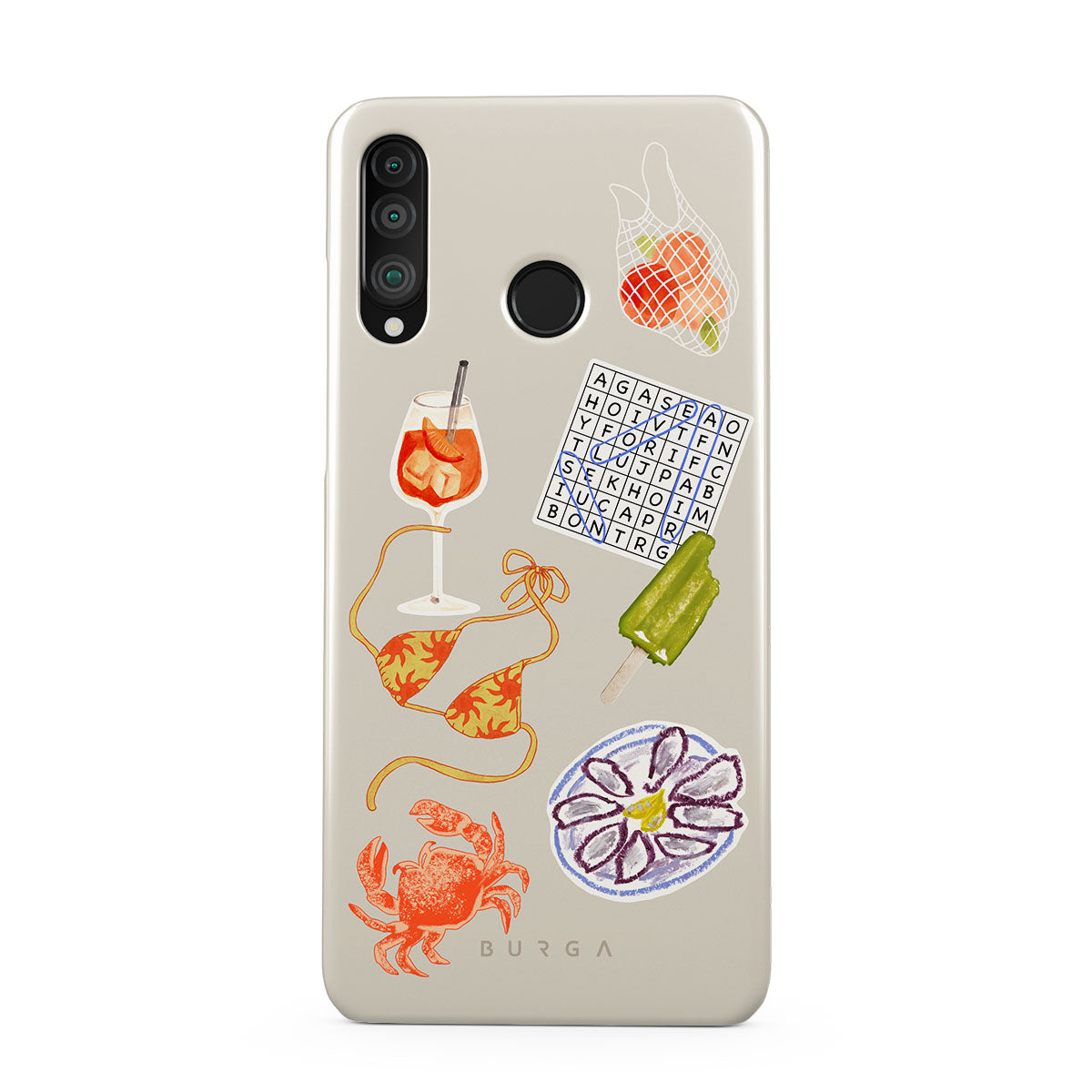 Den här stilen har: krabba, ostronfat, glass, korsord, spritz-cocktail, bikinitopp, frukt.