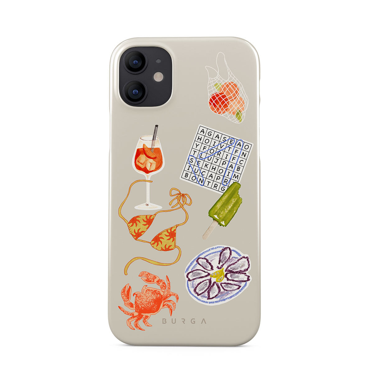 Den här stilen har: krabba, ostronfat, glass, korsord, spritz-cocktail, bikinitopp, frukt.