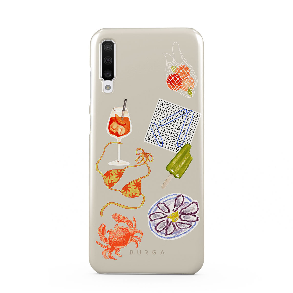 Den här stilen har: krabba, ostronfat, glass, korsord, spritz-cocktail, bikinitopp, frukt.