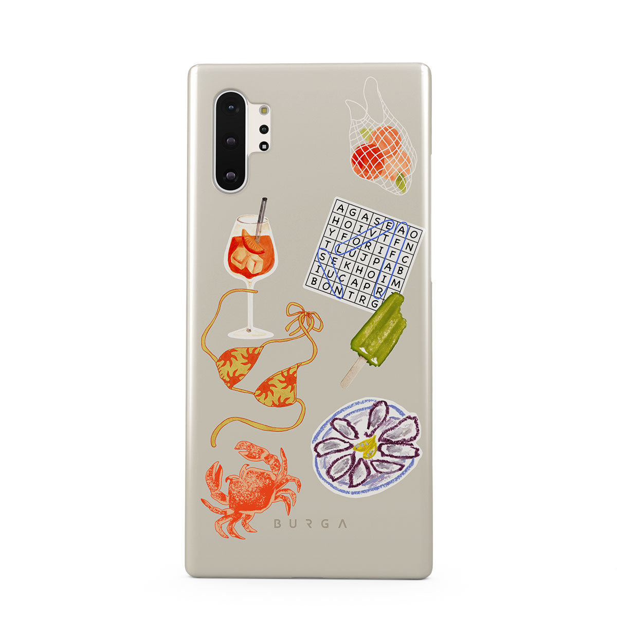 Den här stilen har: krabba, ostronfat, glass, korsord, spritz-cocktail, bikinitopp, frukt.