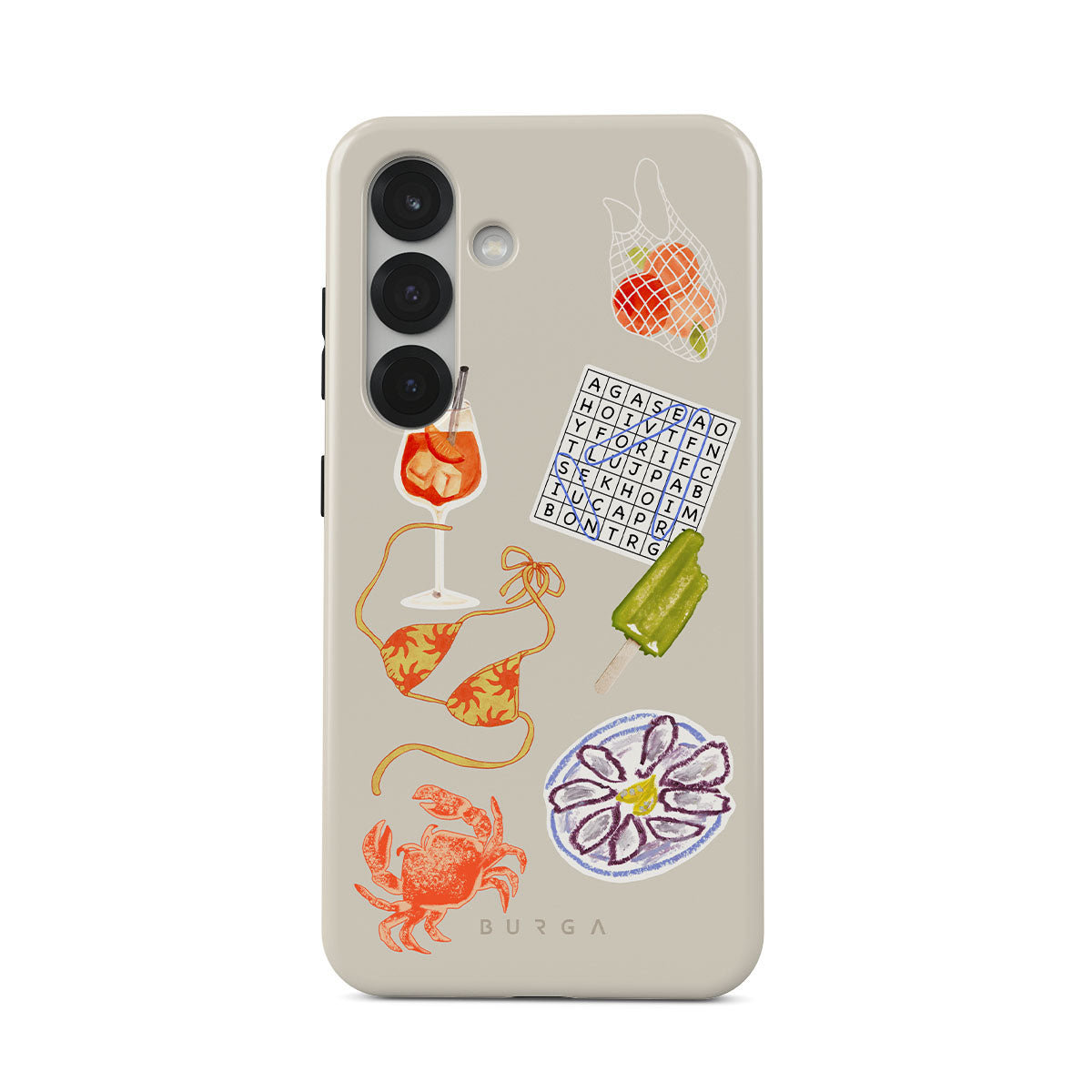 Den här stilen har: krabba, ostronfat, glass, korsord, spritz-cocktail, bikinitopp, frukt.