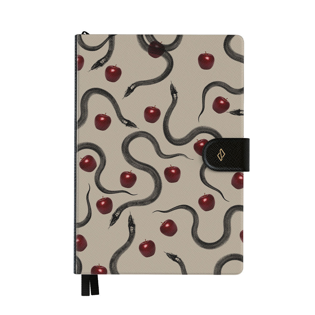 Den här designen innehåller: glansiga röda äpplen, slingrande ormar, beige toner.