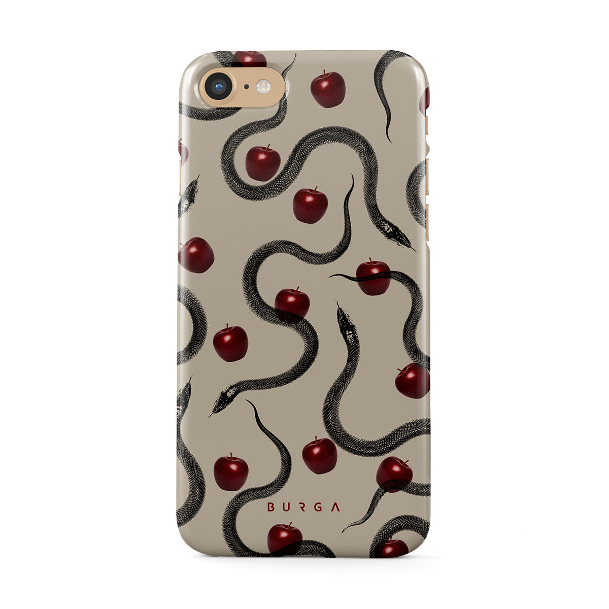 Den här designen innehåller: glansiga röda äpplen, slingrande ormar, beige toner.