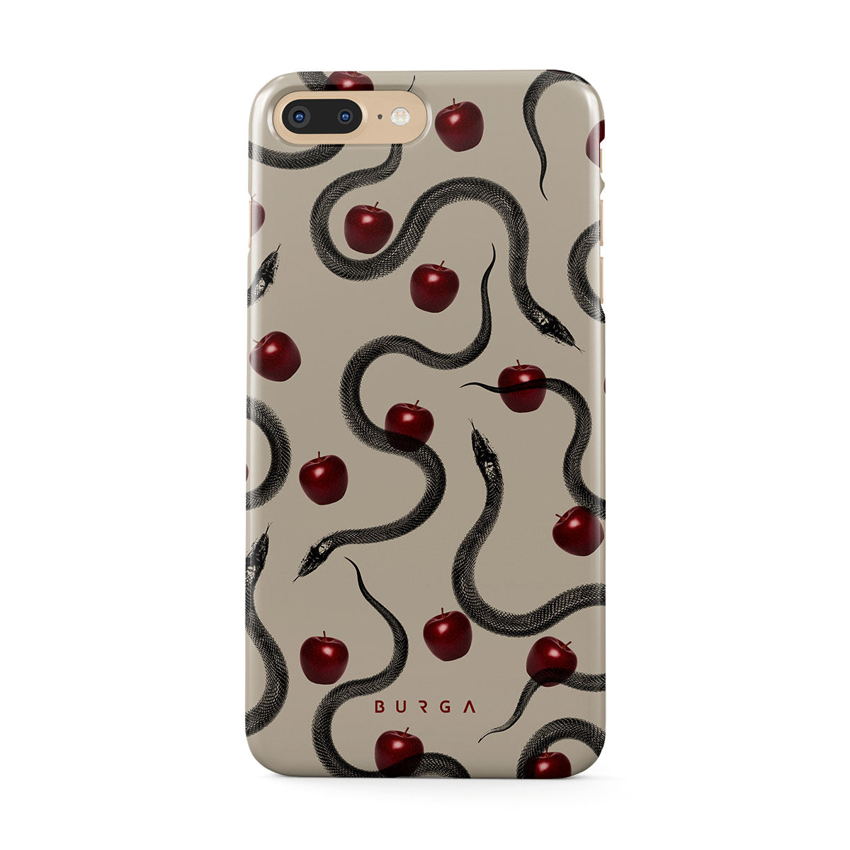 Den här designen innehåller: glansiga röda äpplen, slingrande ormar, beige toner.