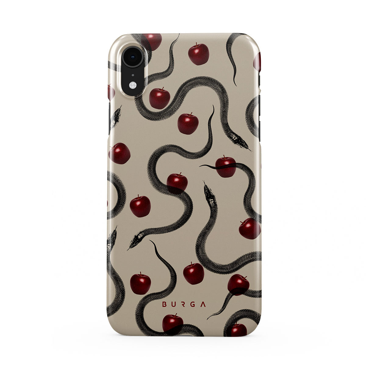 Den här designen innehåller: glansiga röda äpplen, slingrande ormar, beige toner.