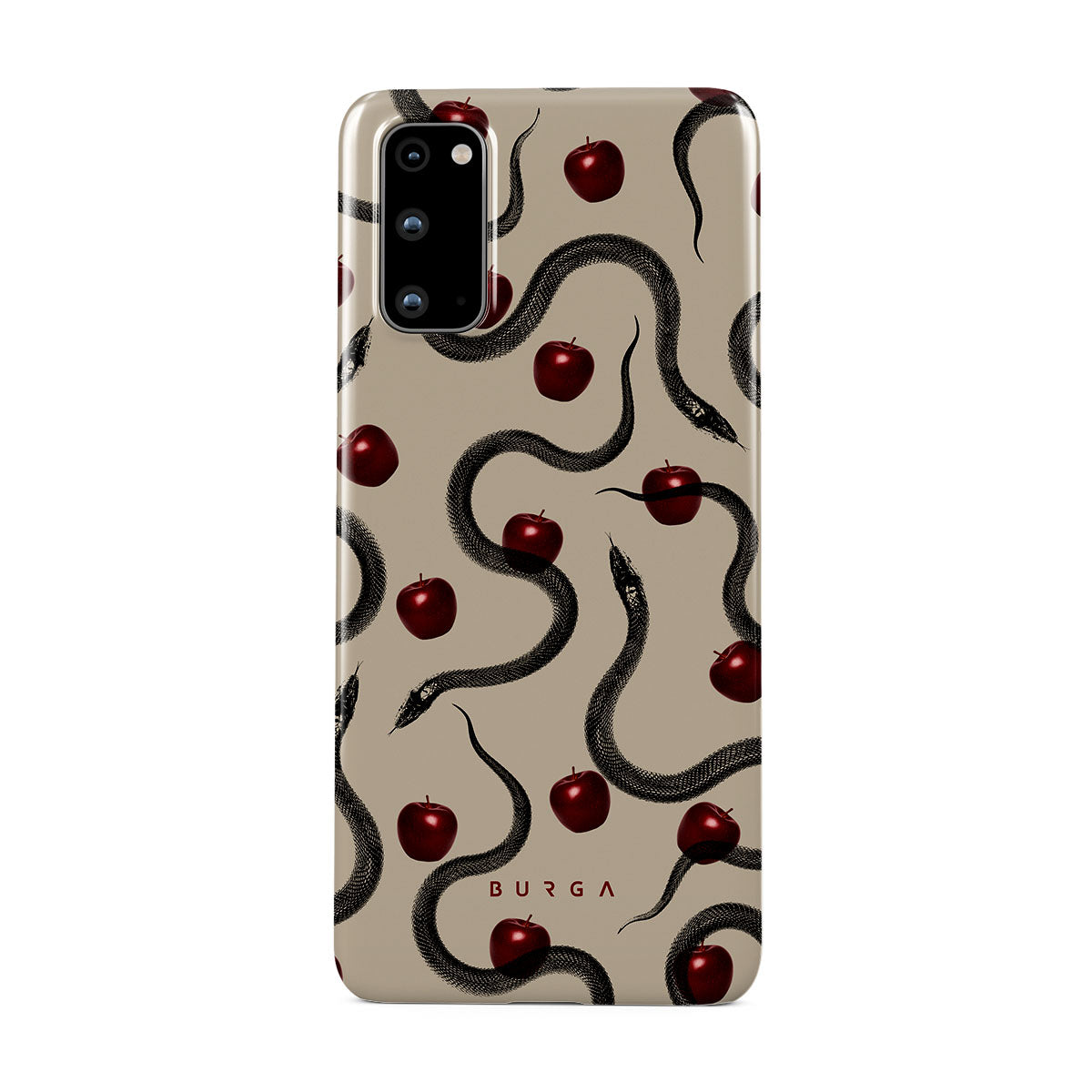 Den här designen innehåller: glansiga röda äpplen, slingrande ormar, beige toner.