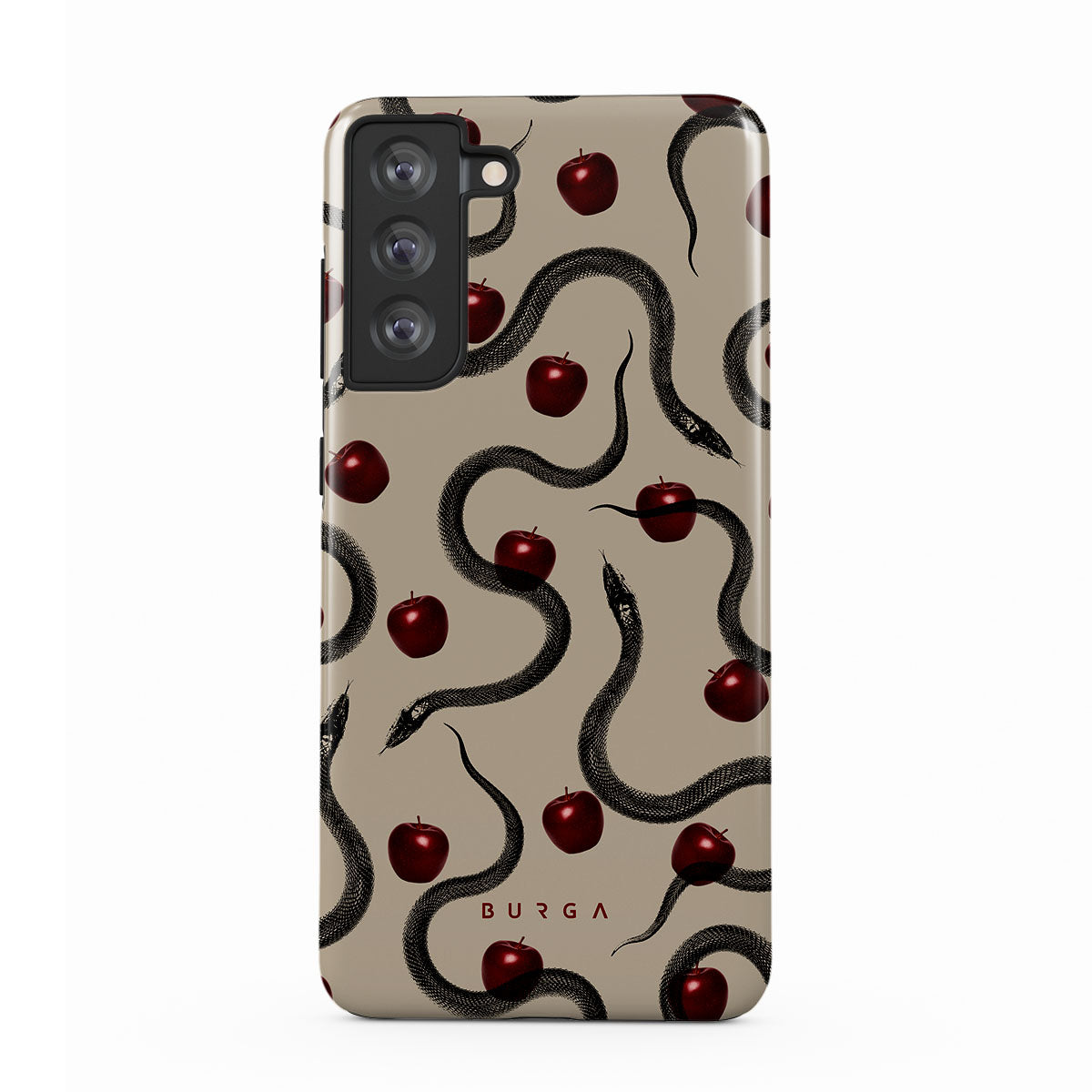 Den här designen innehåller: glansiga röda äpplen, slingrande ormar, beige toner.