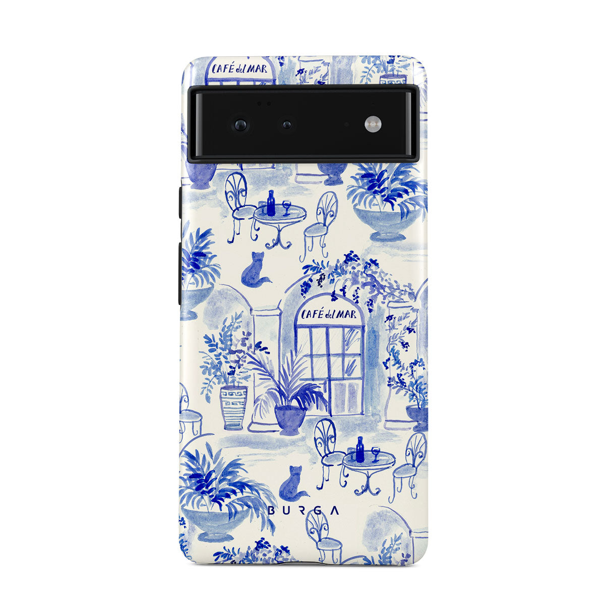 Obs! Designen är tryckt – inte texturerad eller upphöjd.Den här stilen har: Milda blå nyanser, kustmotiv, café-element, minimalistisk stil, retro mönster, medelhavsmotiv.