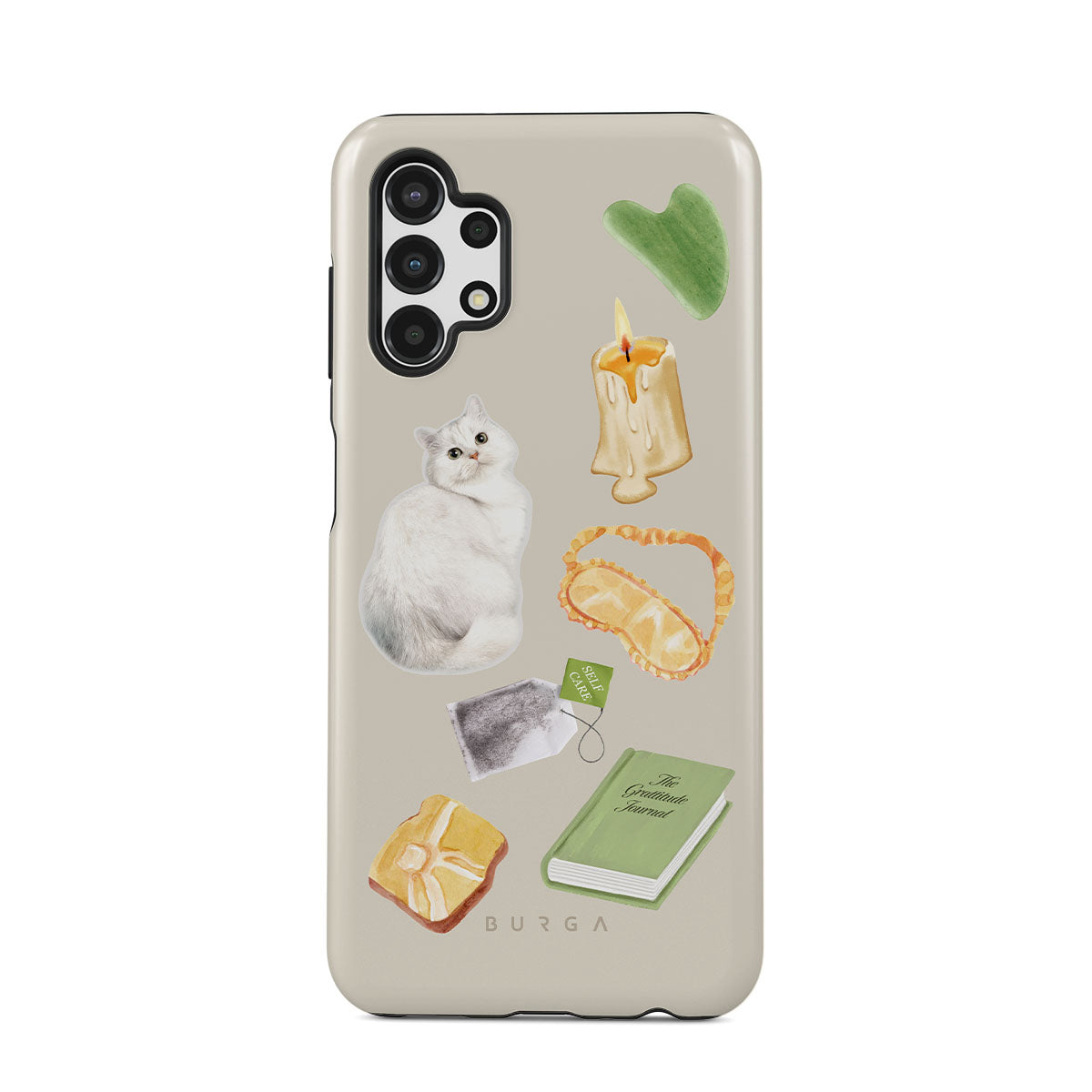 Den här stilen har: vit katt, grön bok, ljus, Gua Sha-stav, sovmask, tepåse, gul kristall.