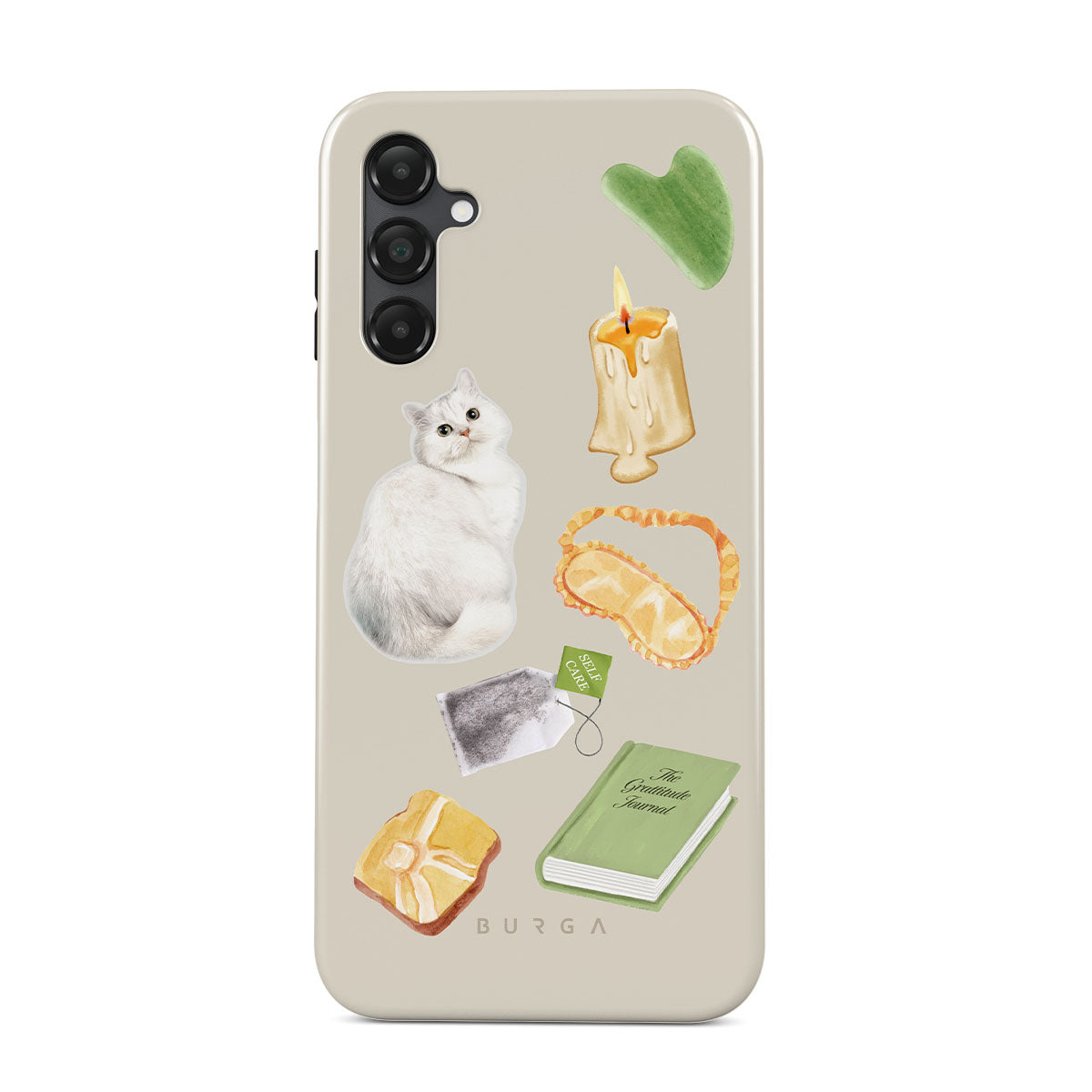 Den här stilen har: vit katt, grön bok, ljus, Gua Sha-stav, sovmask, tepåse, gul kristall.