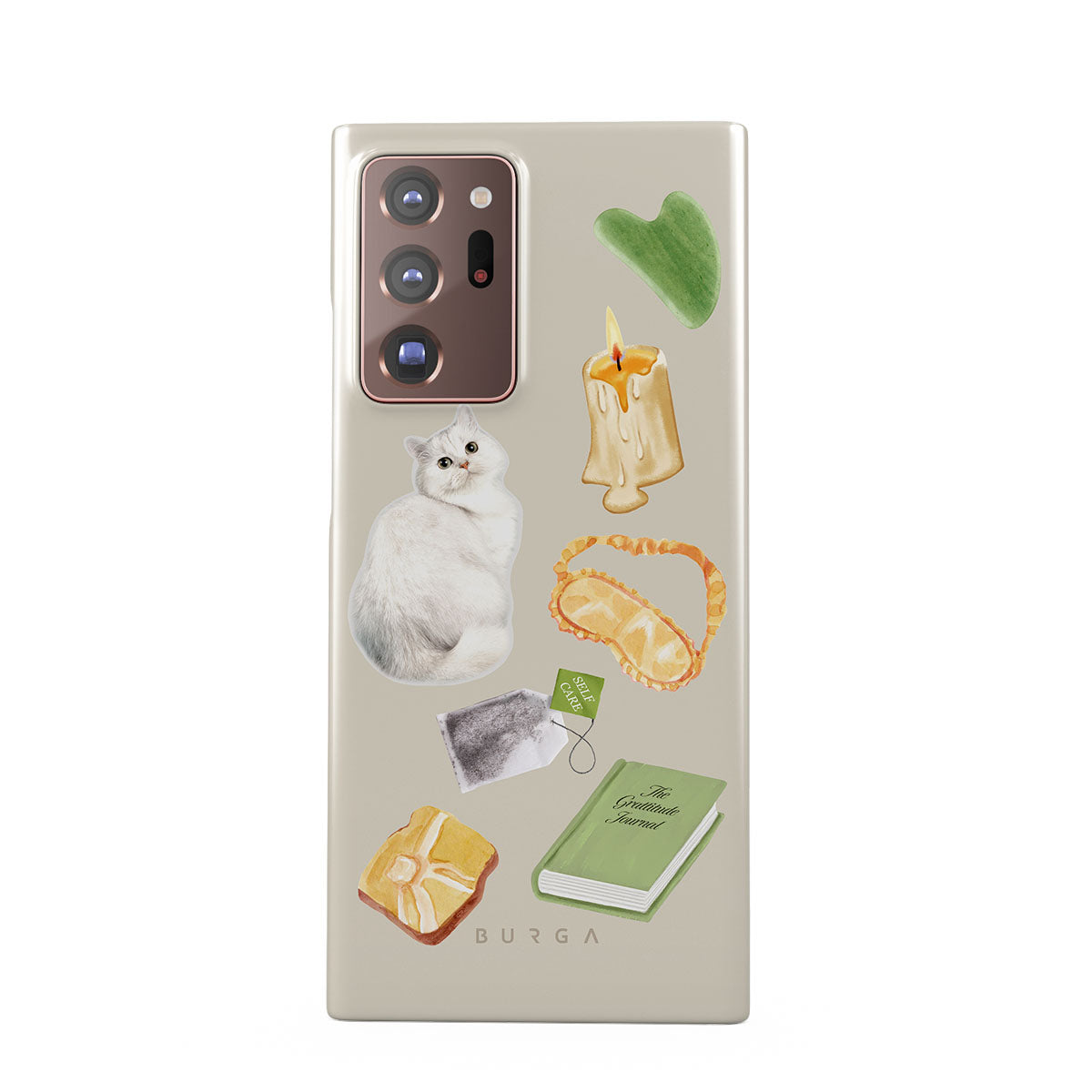 Den här stilen har: vit katt, grön bok, ljus, Gua Sha-stav, sovmask, tepåse, gul kristall.