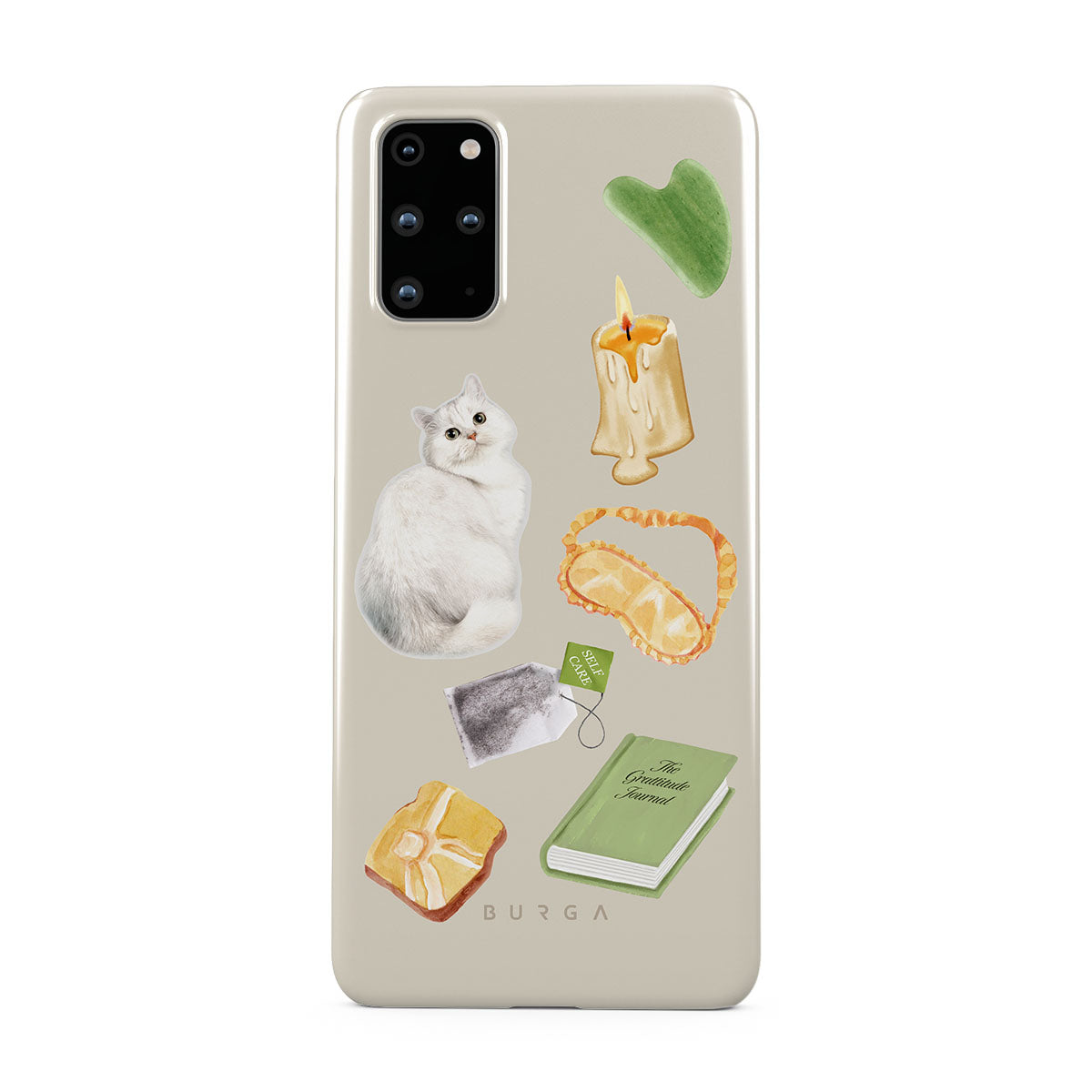 Den här stilen har: vit katt, grön bok, ljus, Gua Sha-stav, sovmask, tepåse, gul kristall.