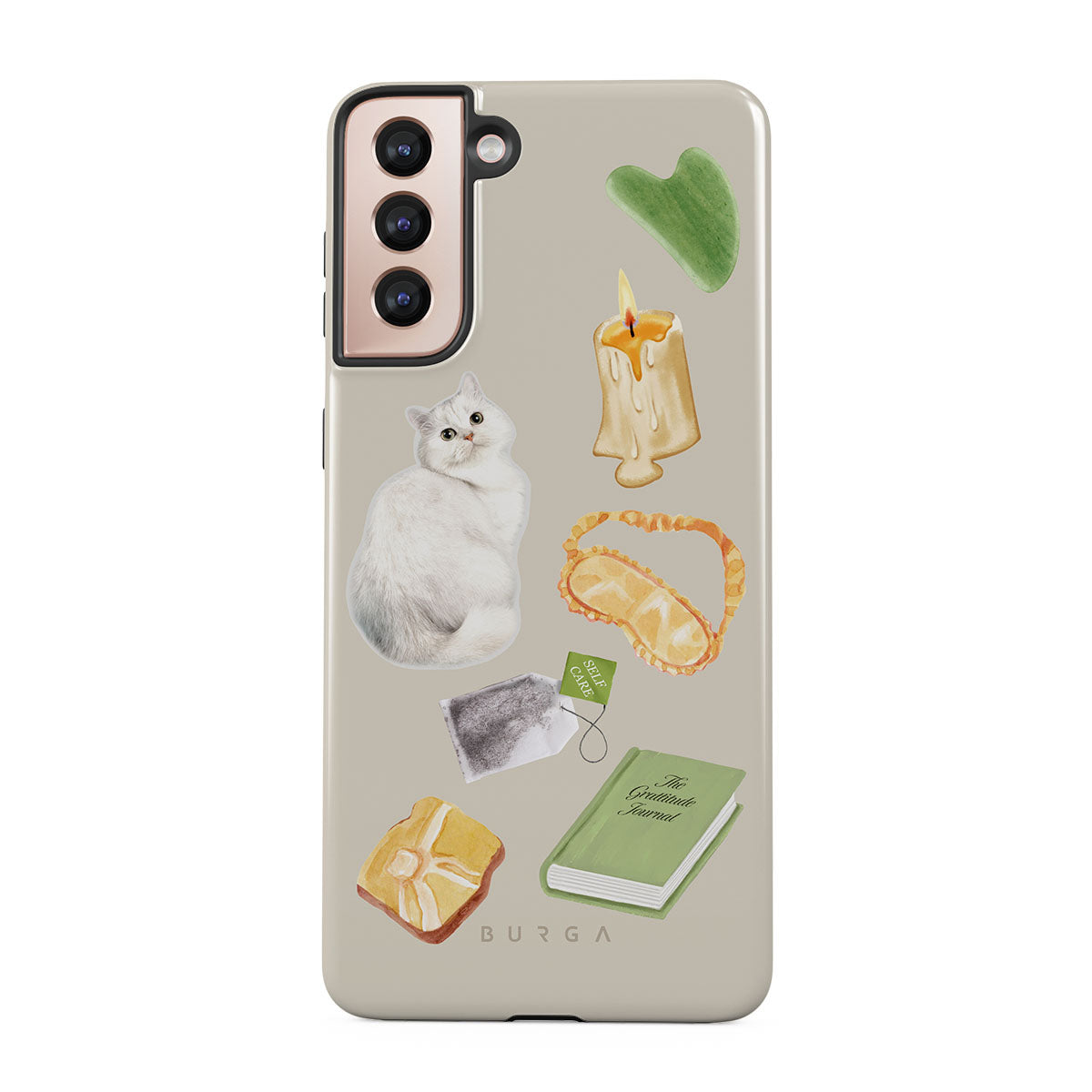 Den här stilen har: vit katt, grön bok, ljus, Gua Sha-stav, sovmask, tepåse, gul kristall.