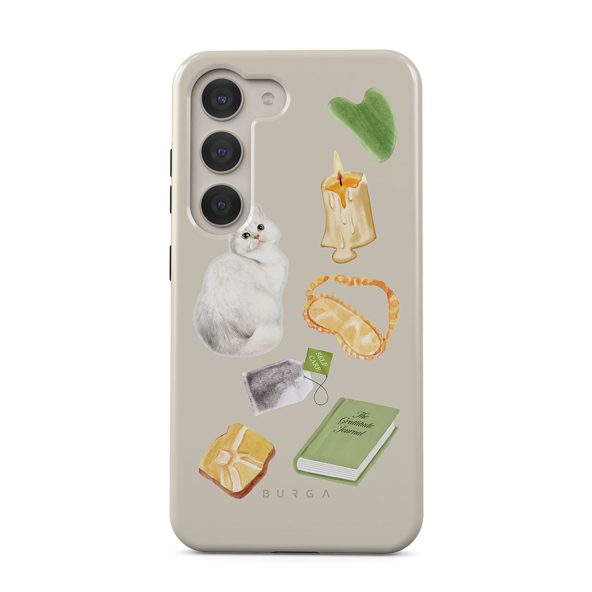 Den här stilen har: vit katt, grön bok, ljus, Gua Sha-stav, sovmask, tepåse, gul kristall.
