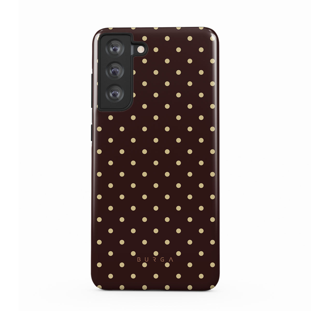 Den här stilen har: brun bakgrund, beige prickar