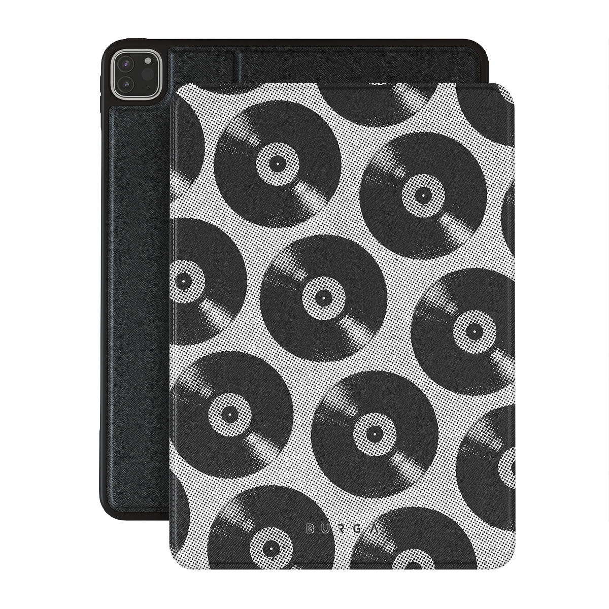 Denna design har: vinylskivor, svart och vitt, musik