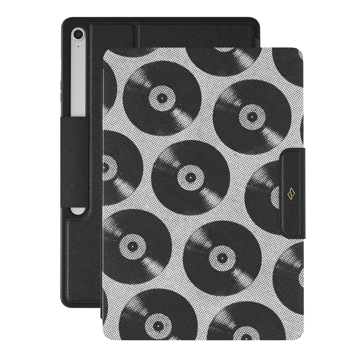 Denna design har: vinylskivor, svart och vitt, musik