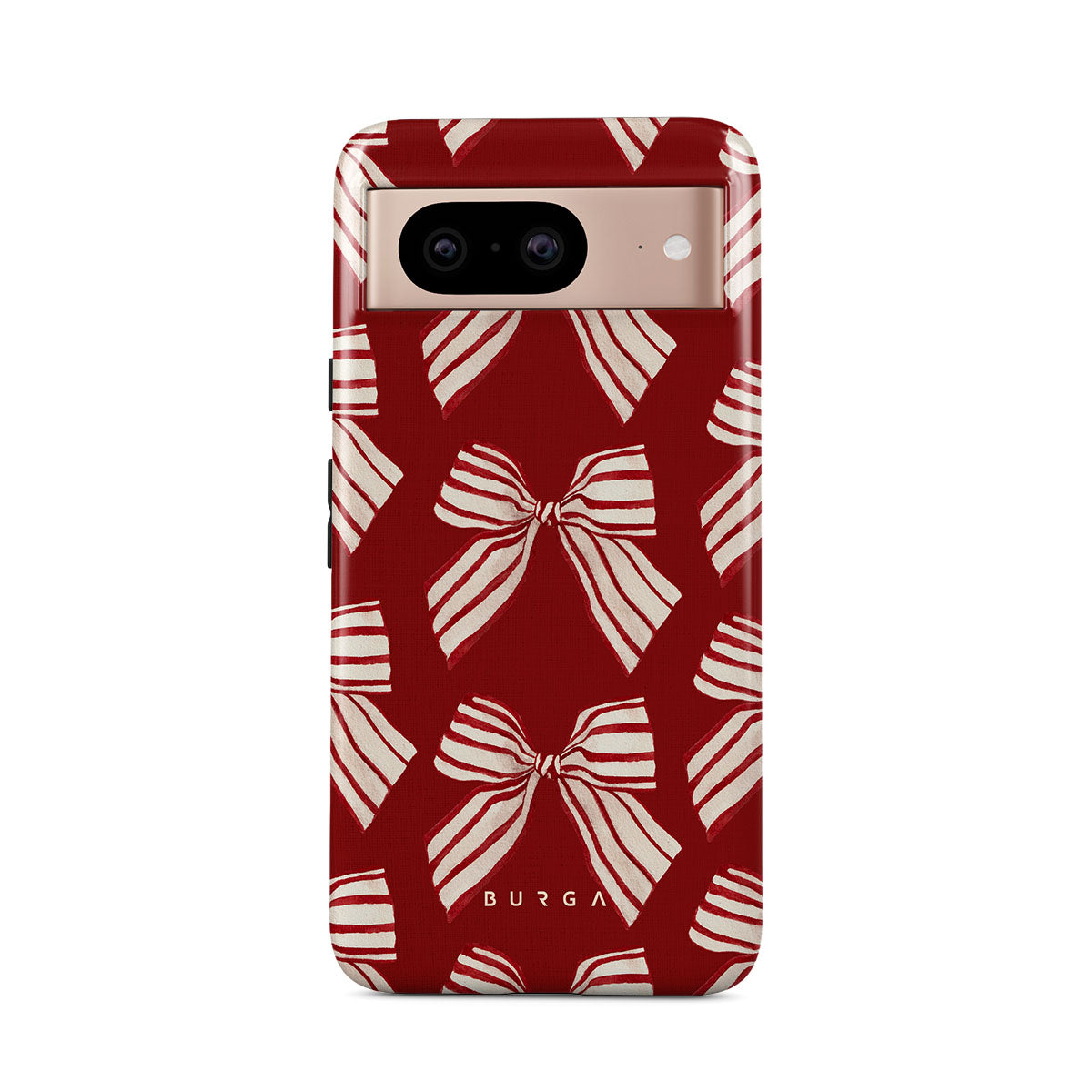 Den här designen har: rosetter, ränder, röd, vit, julmönster