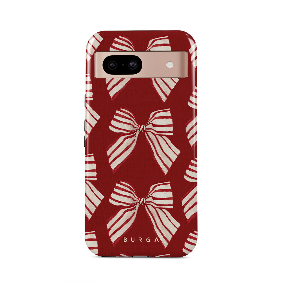 Den här designen har: rosetter, ränder, röd, vit, julmönster