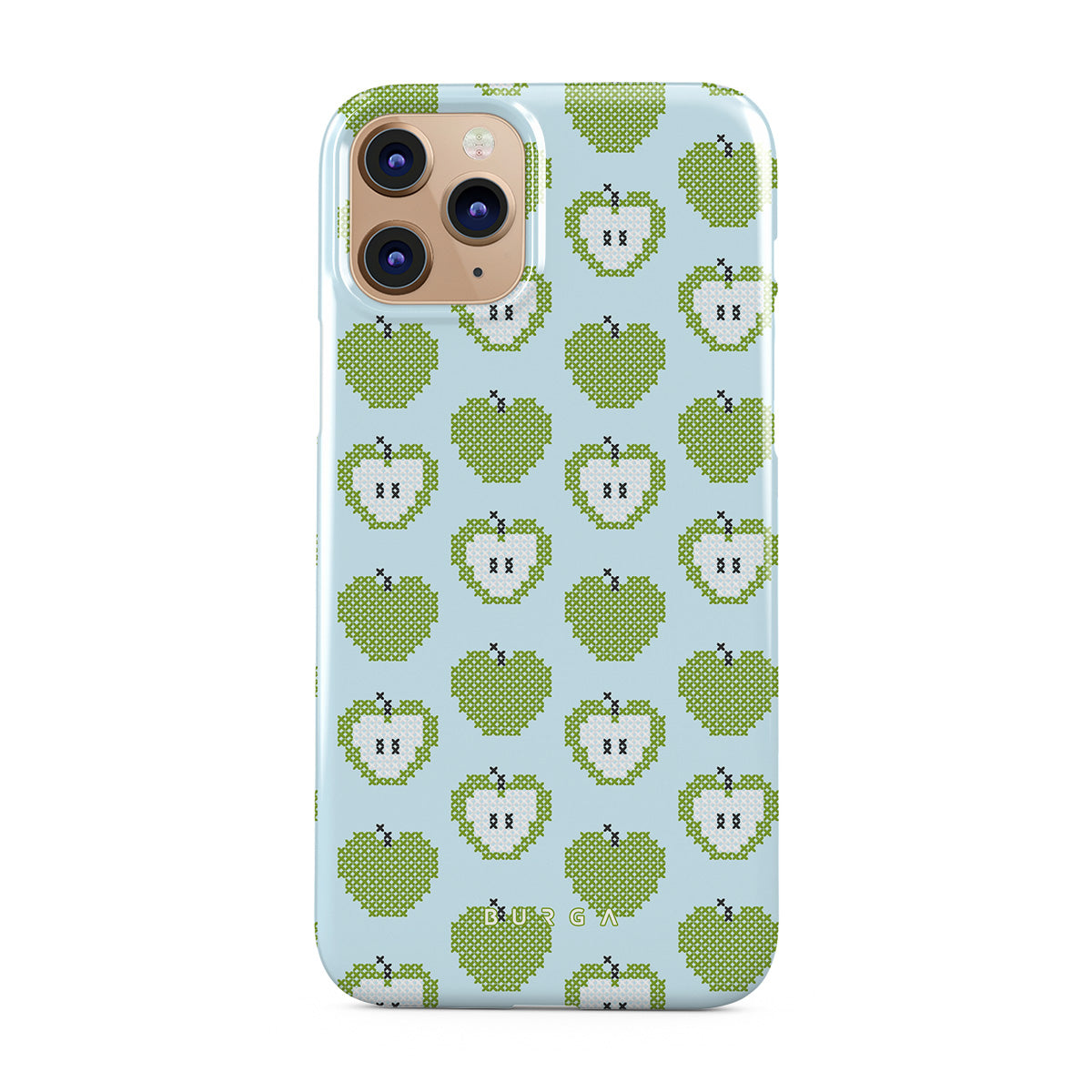 Denna design har: gröna äpplen, biten frukt, grafiska fruktmönster