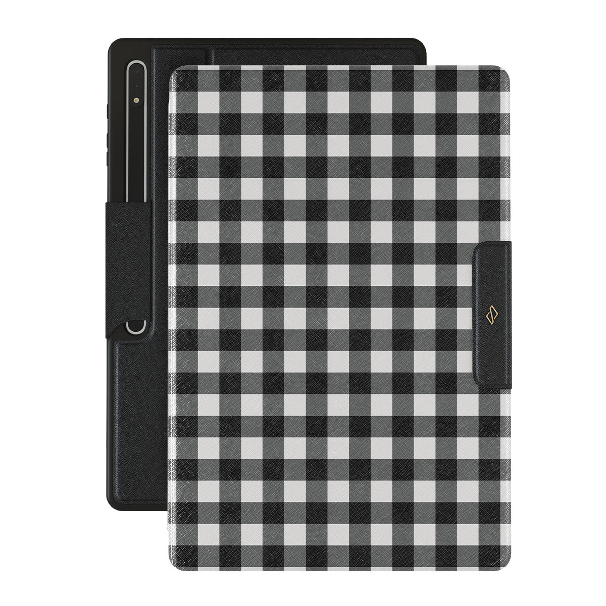 Inbyggd S-pen hållare. • Utsida i veganskt Saffiano läder.