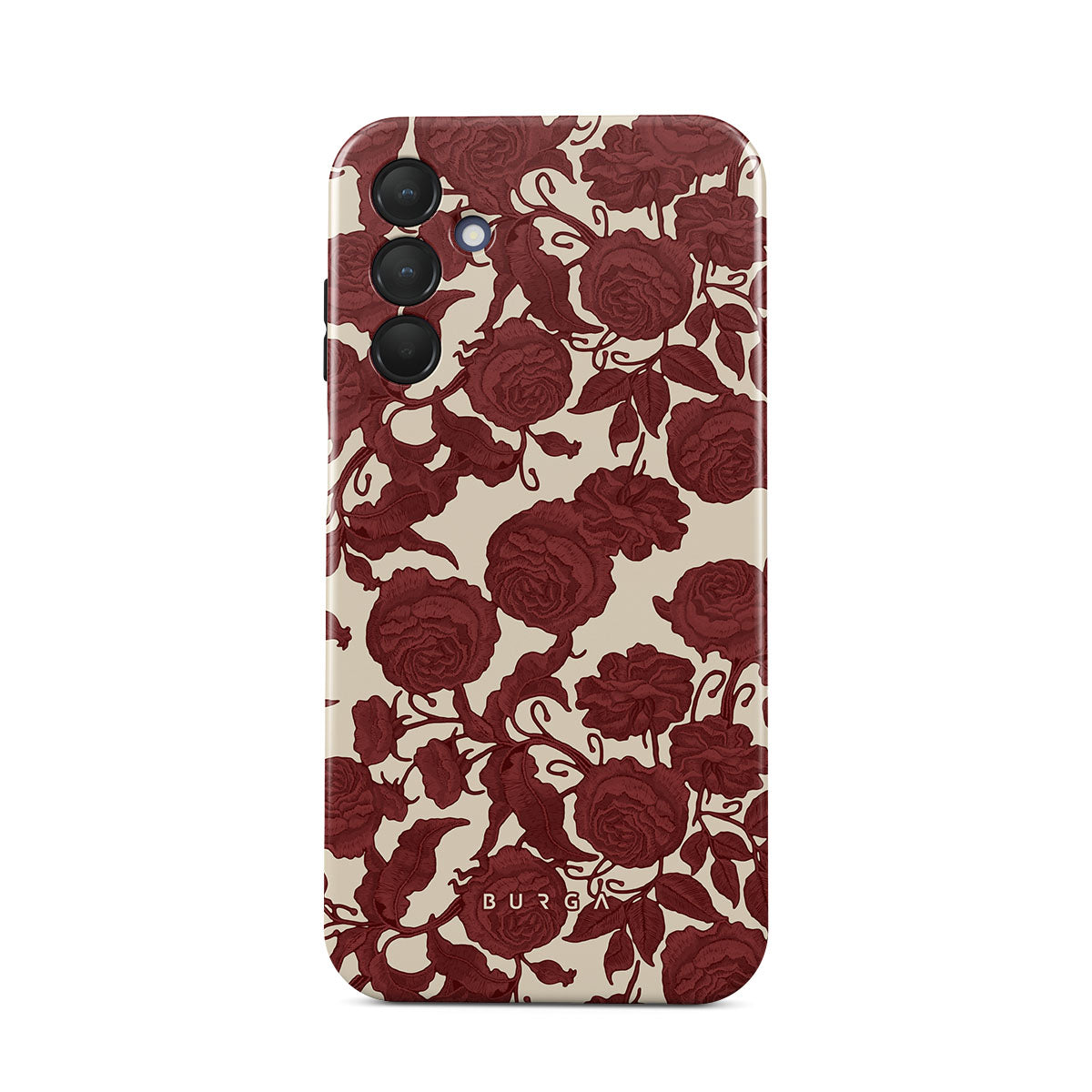 Den här designen innehåller: mörkröda rosor, detaljerat blommönster, vintage-mönster.