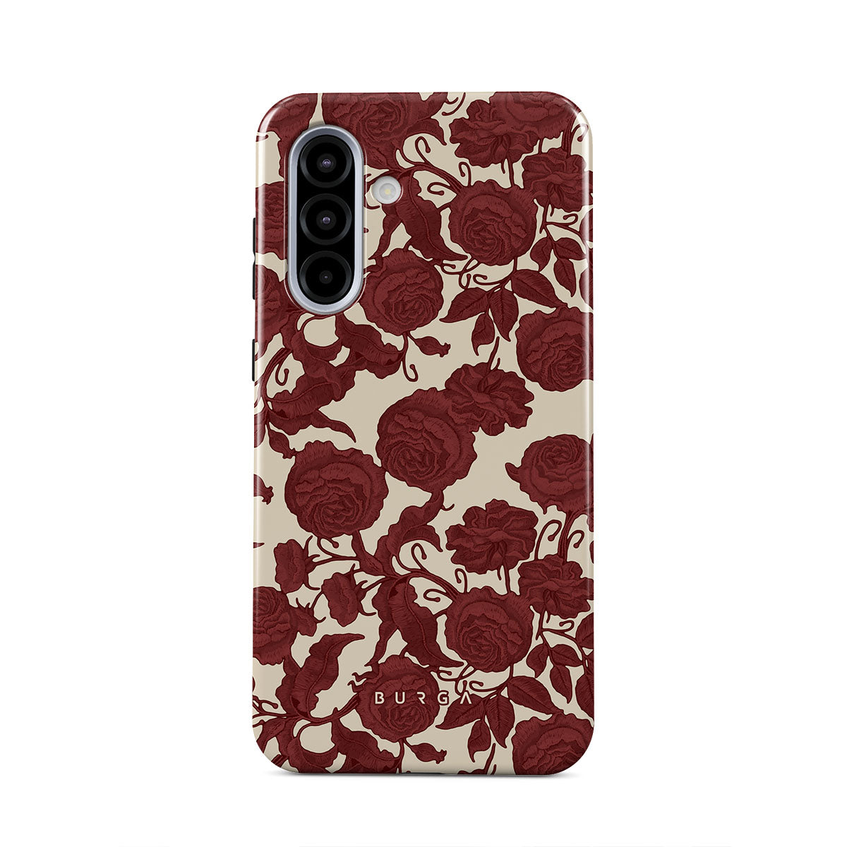 Den här designen innehåller: mörkröda rosor, detaljerat blommönster, vintage-mönster.