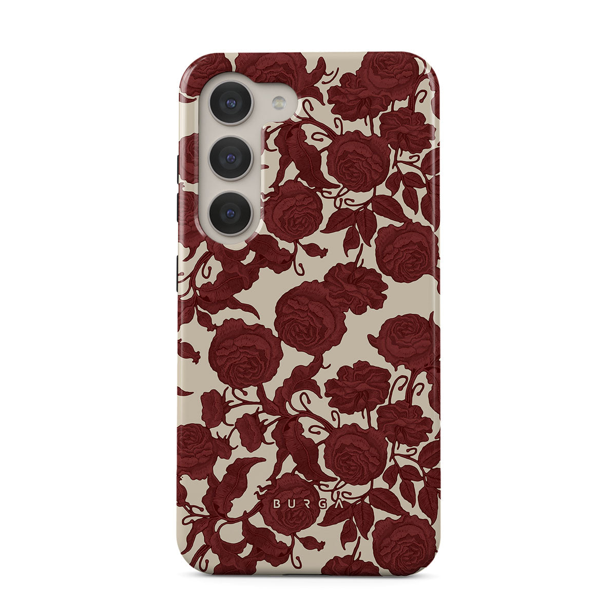 Den här designen innehåller: mörkröda rosor, detaljerat blommönster, vintage-mönster.