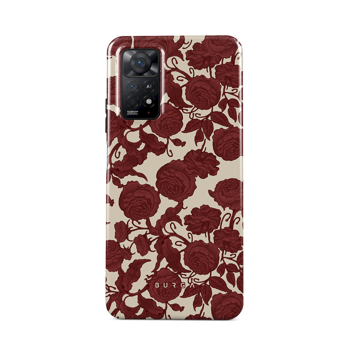 Den här designen innehåller: mörkröda rosor, detaljerat blommönster, vintage-mönster.